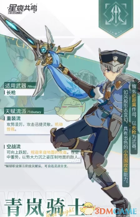 攻击型职业中的不错选取,攻守兼备可进可退,青岚骑士适用的武器是长枪,机动性高相当适合快速切换战场或进行突袭,对于天赋流派的选取上,重装流是一个不错的选取,它允许让青岚骑士拥有更加凌厉的攻势和迅捷灵敏的攻击速度,同时增强其防御能力,另一个选取是空战流,通过向上跃起规避来自地面的攻击,在空中蓄势后以势大力沉的姿态压制地面上的敌人。