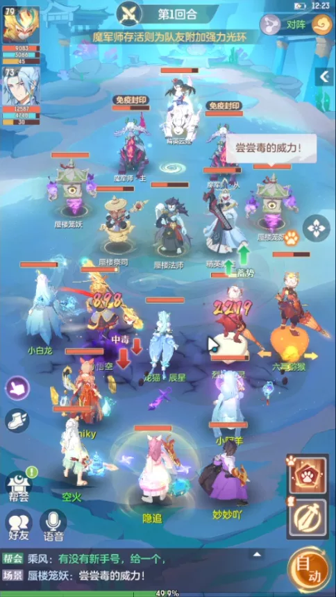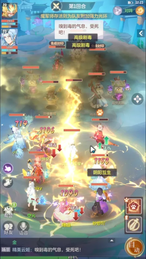 需注意,当敌方魔军师存活时,会给其队友增加强力光环,在强力光环下,敌方【蜃楼笼妖】的闪电会给被击中的目标附加毒状态。并且当我方有单位处于中毒状态时,敌方boss精英云姬会施放更加强力的群攻技能。