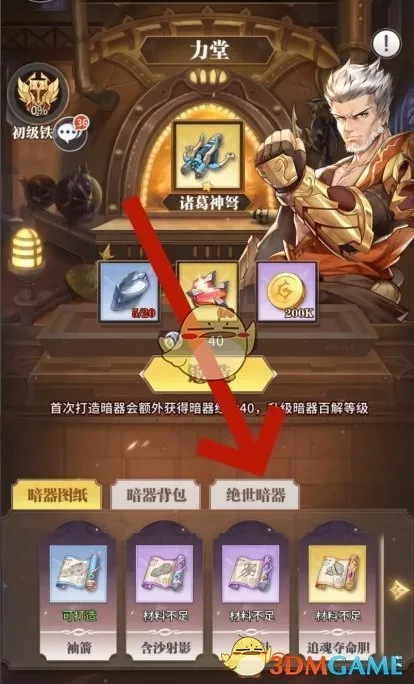 2、此后点击右下角的绝世暗器,前往打造页面;