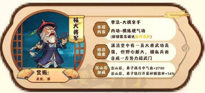 《我要当掌门》客卿福大将军介绍,详细攻略如下: