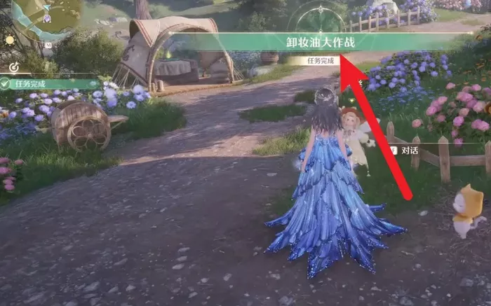 5、重启设备后回到室外和NPC对话,即可完成卸妆油大作战任务。
