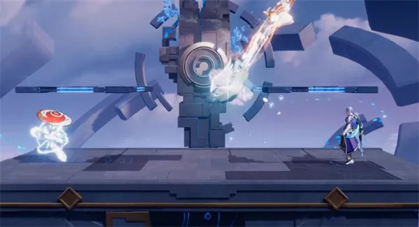 跳起霜雪之舞,持有鹤伞时可以向上进行击飞,再次运用技能可以回到鹤伞处。