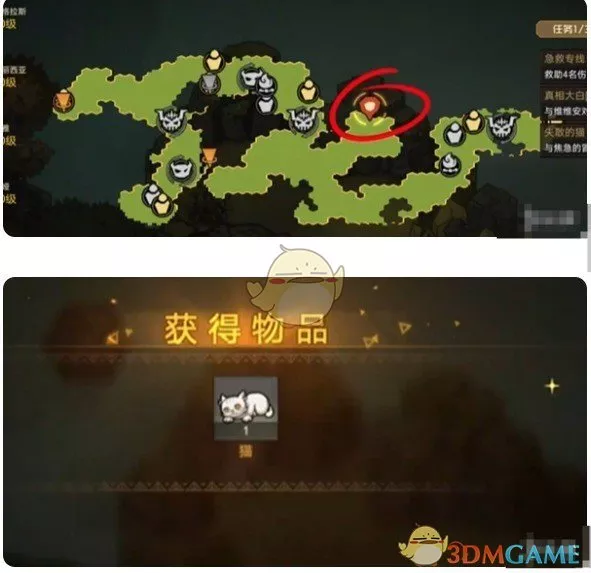 2、前往下图的点位,此后摸一摸大石头,以后小猫便会出来。
