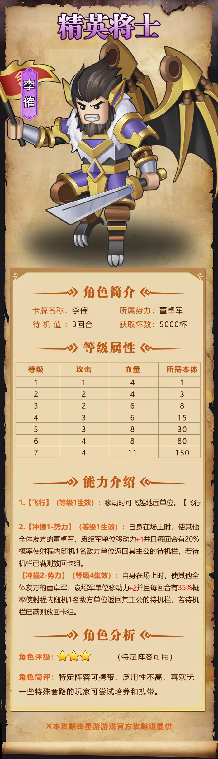 《我是小奇兵》李傕角色详情介绍,详细攻略如下: