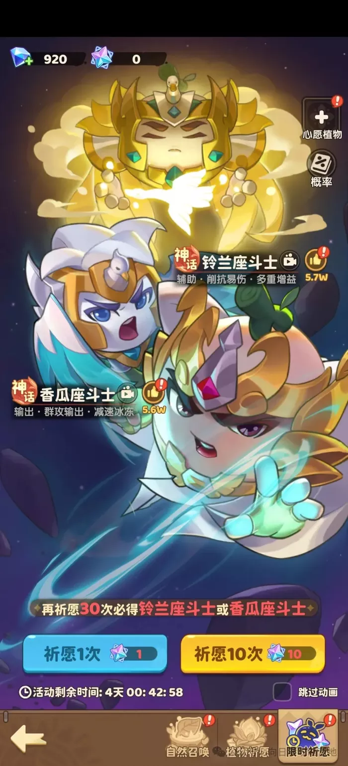 群攻输出:香瓜座斗士的超流星和彗星拳给予强大的群攻输出,配合其他水系植物的控制效果,可简单战胜敌人。
